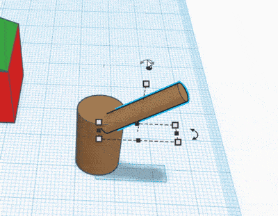 Adesso devi inclinare il cilindro più piccolo. Clicca sul cilindro del ramo e avvicinati con lo zoom. Noterai 3 frecce ad arco in prossimità del solido. Ruota la visuale per osservarle meglio. Se passi il mouse sopra una di esse, apparirà una figura circolare e il testo 0°.