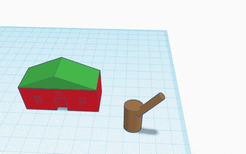 Ognuna di queste frecce rappresenta il comando per ruotare un solido in ognuno dei tre assi di razione. Un solido in uno spazio tridimensionale può ruotare lungo tre assi. La figura circolare ci aiuta a capire lungo quale asse ruoterà il solido. Il numero cardinale rappresenta l’angolo di rotazione. Il solido ruoterà di un valore pari all’angolo inserito. Ruotiamo il nostro ramo. Clicca sul solido. Clicca sulla freccia curva che rappresenta l’asse parallelo alla facciata principale della casetta (guarda l’animazione in basso), poi clicca sul numero 0° e digita 30. Infine, premi il tasto INVIO.