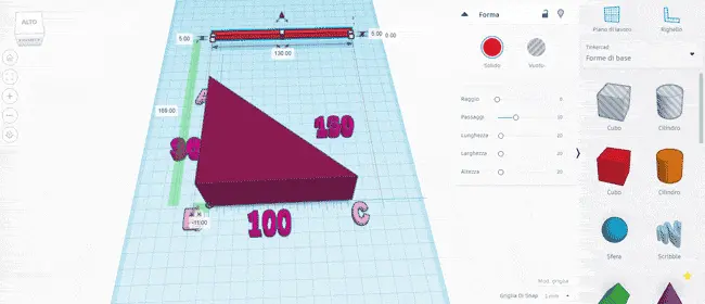 Inserisci due cilindri sul piano di lavoro, accanto alla tua casetta. Per il primo cilindro impostiamo le seguenti misure: