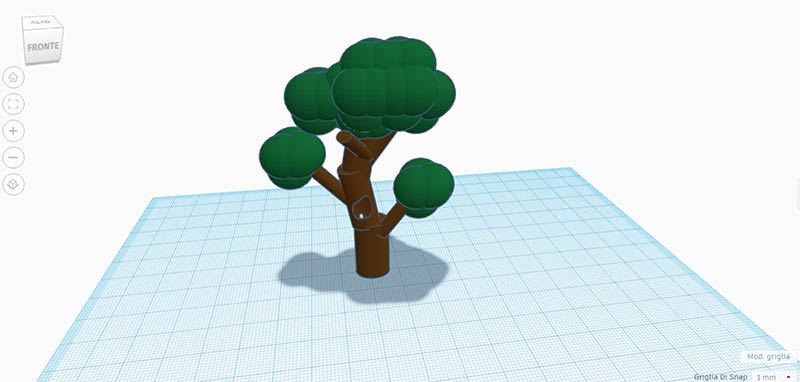 Tinkercad non è un software che permette il disegno CAD, ma che assembla solido pre-esistenti. Pertanto è importante utilizzare il pensiero analitico per immaginare di quali solidi di base può essere composta una figura più complessa. Nonostante le figure di base siano limitate, i risultati possono essere molto interessanti. Guarda come si può arrivare ad un albero, utilizzando solo cilindri e sfere!